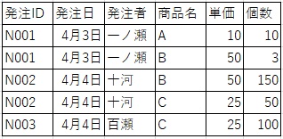 簡単にいえば、列を一意になるように整理して、1つのセルに1つの値しか含まれない状態にします。