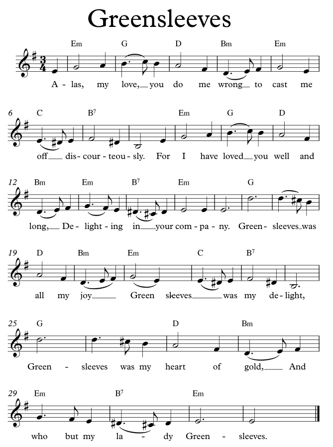 グリーンスリーブスは、16世紀頃のイングランドで生まれたと云われている伝統的な民謡です。