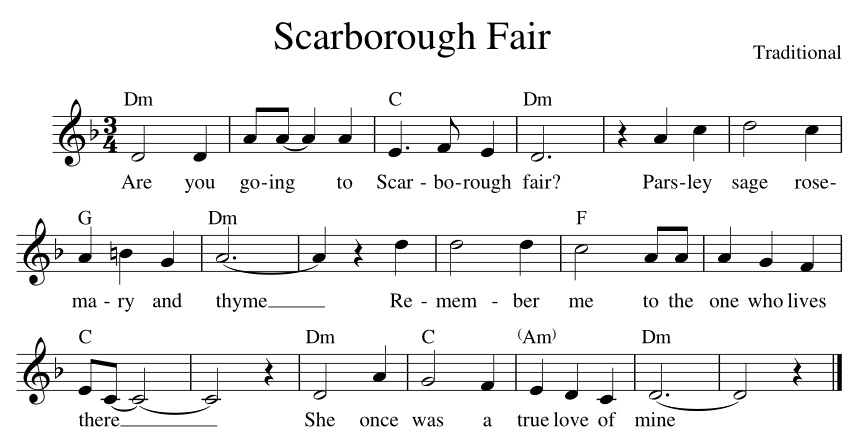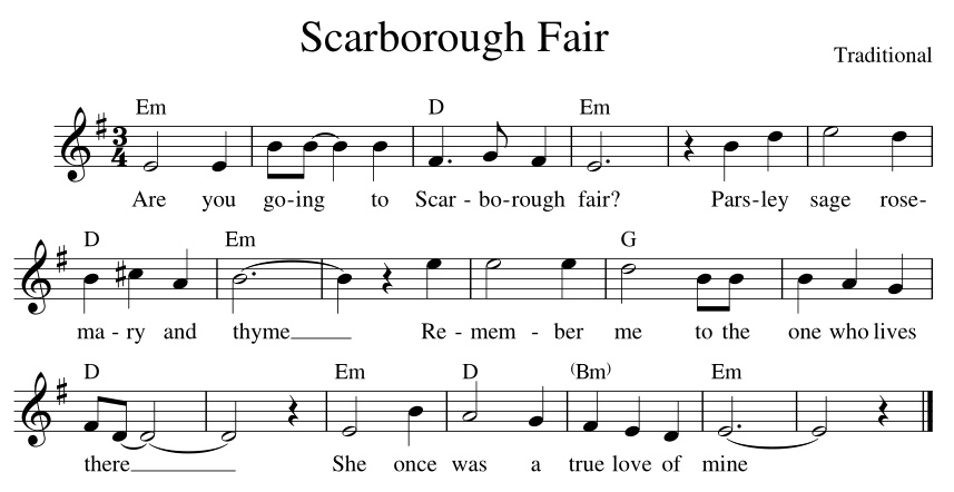 スカボローフェアは、16 世紀頃のイングランドのブロードサイド・バラッド(伝承歌)を源流とするトラディショナルであり、作曲者は不明です。