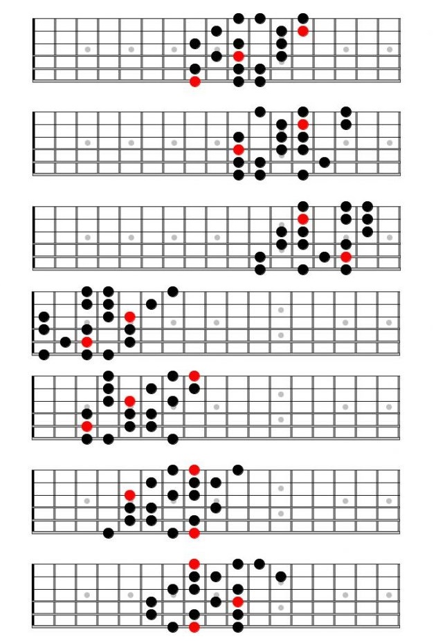 ハーモニック・マイナースケールを覚えるためには7つのボックスポジションを繰り返し練習すると効果的です。