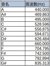 具体的に各音の周波数を計算してみます。