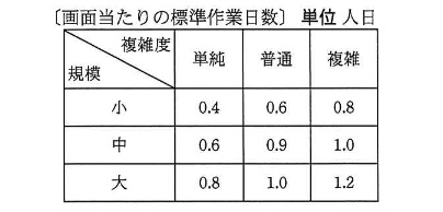 また、場合によっては、その作業特有と思われる複雑さを考えた係数を掛け合わせて算出することもあります。
