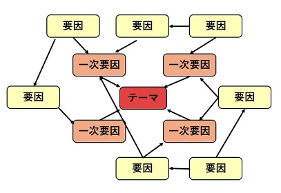 - 問題に直接関係する要因(一次要因)3~5個程度を洗い出す。