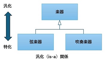 子クラスになるほど「特化」(特殊で具体的なものに具体化)していき、親クラスになるほど「汎化」(抽象的であいまいなものに一般化)していきます。