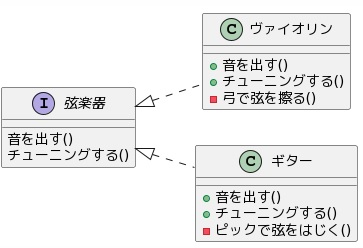そのために、インスタンス化されたヴァイオリンを引数にとり、そのヴァイオリンを弾くというメソッドを持ちます。