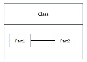 コネクタは、パート、構造化分類子、インターフェースをつなぐ実線です。
