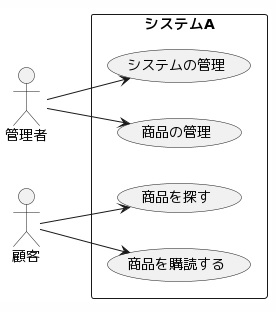 ユースケース図を用いることで、システムにはどのような機能があるのか、だれがその機能を使えるのかを、わかりやすく伝えることができます。