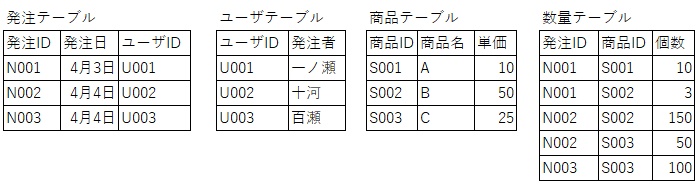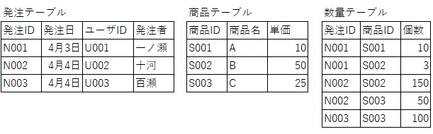 また、中心的な役割になっている数量テーブルは「発注明細書テーブル」という名前に変えたほうがいいかもしれません
