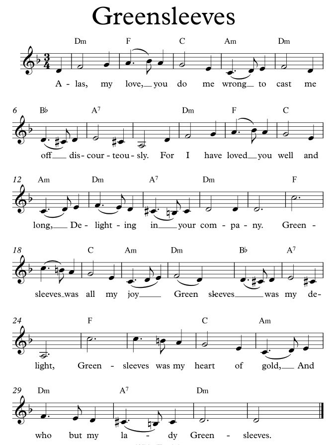 グリーンスリーブスは、16世紀頃のイングランドで生まれたと云われている伝統的な民謡です。