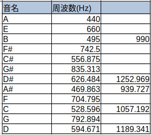 具体的に各音の周波数を計算してみます。