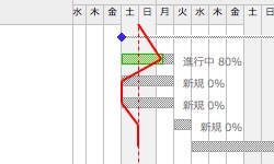 イナズマ線とは、ガントチャート上で各タスクの進捗具合に合わせて線を引き、各タスクの進捗状況を可視化する仕組みです。