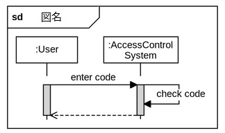 インタラクションを詳細に記述する場合には図形の左上に「sd」と表記して、中央にコミュニケーション図やシーケンス図の名前を表記します。