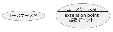 拡張ポイントがある場合には、図形の中央に線を引いて区切り、上にユースケース名、下に拡張ポイントを記載します。